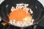 一次放入姜末和蒜末和胡萝卜末。