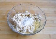 将豆腐去外皮,捣碎,加蛋清、盐、鸡精、淀粉调匀。