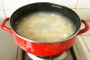 将母鸡、干贝放在锅内。