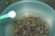 锅里下油,八分热加入拌好的海蛎。