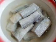 将带鱼的内脏收拾干净,切成块状。