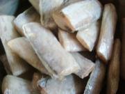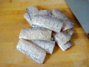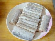 将带鱼块两面剞十字花刀(斜切成网格状),切半寸段。