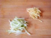葱姜切细丝。