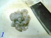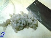 然后把虾片切成均匀的小粒,颗粒的大小,似小拇指甲盖大小即可。