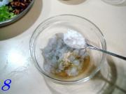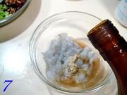 倒入水淀粉后,加少许清水搅匀,放入葱姜蒜末备用。