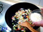 炒勺上火烧热,注入适量烹调油,油温三成热下入所有食材同炒。