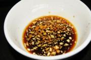 以蒜泥和酱油跟醋2.5:1调成汁。