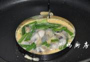 再加入洗好的海蛎。拌均匀静放三分钟。