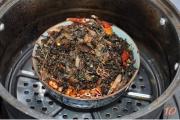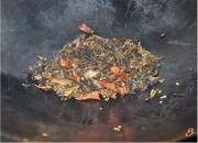 锅内留底油,倒入梅干菜翻炒(喜欢吃辣椒的可以放入干辣椒一起炒)