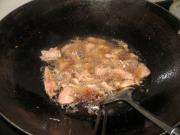 将滑过油的猪肝下锅。