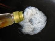 粉丝用开水烫软,沥干水分,加入麻油、熟植物油和盐拌匀。