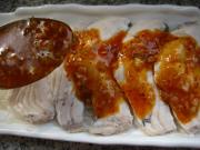 将芡汁浇在鱼片上,撒上香菜末即可。