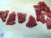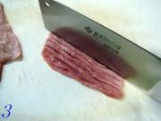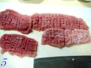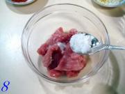 在肉片上剞十字花刀,先顺刀划口,刀深三分之二。