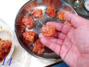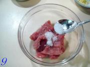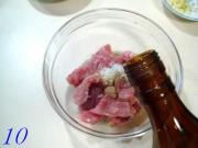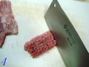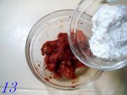 剞好花刀后,肉片的通身呈小颗粒状,这样在炸的过程中便于呈球状,确保肉片不会散开。