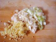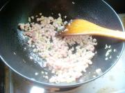 锅里放油,六成热放入葱、姜、蒜末煸炒出香味。