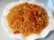先将粉丝洗净,过热水淖2分钟,捞出来过凉水备用。