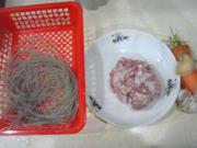 材料:粉丝,肉馅,胡萝卜、姜、蒜。(粉丝提前泡软沥干水分)
