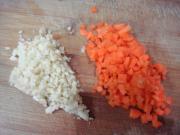 切姜、蒜末,胡萝卜丁。