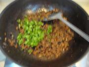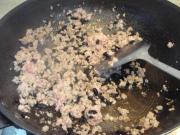 炒出油份后放肉末翻炒。
