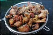 锅里倒入小半锅油,待油8成热后,下鸡块用中到大火炸至金黄色。