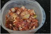 鸡块再砍成2-3 厘米见方的小块,放置碗中,加酱油,料酒,味精,盐,姜片腌制,建议提前准备,腌的时间越久味道越好。