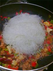 接着趁还有水的时候把事先用热水泡好的粉丝倒进去。