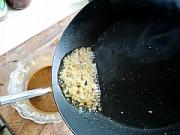 炒锅倒香油放入花椒,姜末小火炸香。