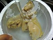 然后把鸡腿捞入凉水中冲洗一下。