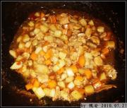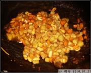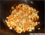 倒入胡萝卜丁和黄瓜丁翻炒。