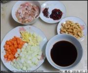 鸡腿剔骨,肉切丁,胡萝卜黄瓜切丁,姜切丝,蒜切片,鸡丁用料酒、生粉、酱油腌制,做好调料汁:酱油一勺、料酒一勺、醋少许、糖少许、生粉少许。