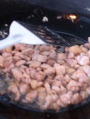 锅中倒入油,大火加热,待8成热时倒入腌好的鸡丁快速炒散。变色后迅速捞出,保留锅里的油。