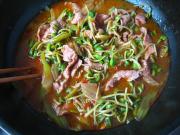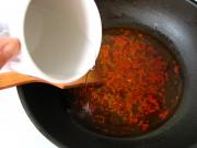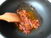 锅中倒入植物油烧热,炒红郫县豆瓣酱。