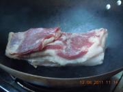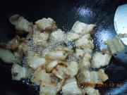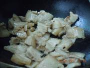 倒入备好的五花肉块直接下锅锅爆。(我喜欢比较老的,今天肉有一点肥,老一点,肥的煸干更好吃,吃起来也不腻。)