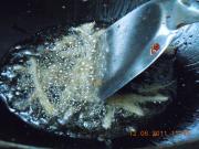 爆出的油留在锅底。倒入姜蒜爆香。