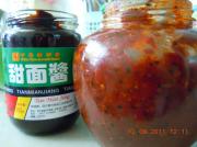 甜面酱跟自家做的豆瓣酱。(豆瓣酱自家做的,做一次可以吃好长时间,比外面卖的都好吃哦)