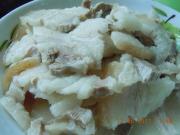 肉片放置到不烫手后切成约4*6cm,厚度2mm的片备用。