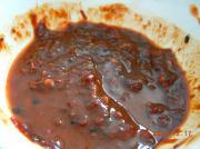 一勺豆瓣酱加半勺甜面酱调匀,可散几粒白糖几滴料酒。