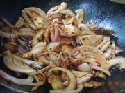 倒入洋葱合匀翻炒到差不多熟。加少许盐 鸡精。