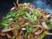 洋葱入味差不多熟 倒入煸好的尖椒。