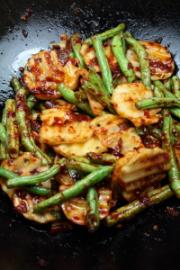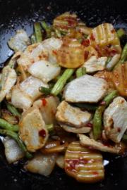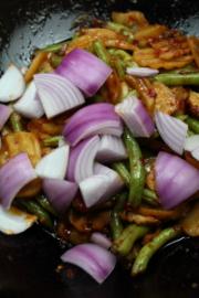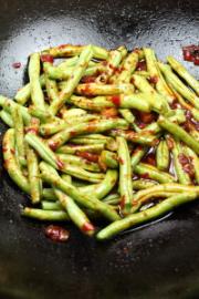 放入四季豆翻炒均匀
