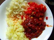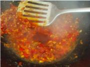 底油少许,小火炒图三中的四料。一分钟左右,完全融合,油变成红色的为好。