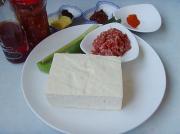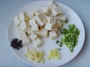 豆腐切见方小块;姜蒜、蒜苗切末;豆豉切碎备用。