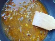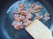锅置火上油加热,下入牛肉馅改小火煸炒至成金黄色。