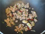 放入肉末炒香。