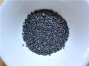 黑芝麻入锅中炒熟。