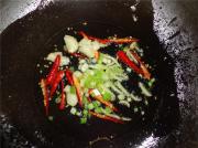 锅烧热放油,放葱、姜、蒜、辣椒炸香。