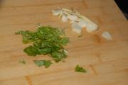 香菜切末,姜切丝,蒜切片。