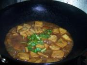 下入炸好的豆腐皮搅拌均匀,出锅前撒上香菜即可。