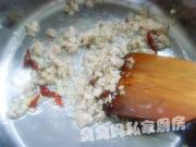 然后放入肉末炒散至变色。
