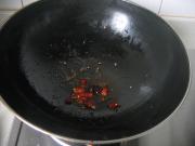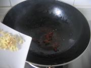 锅中放入干辣椒和四川辣酱煸炒出油红。